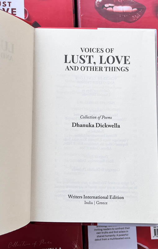 Voices of Lust, Love and Other Things is a bold and intimate collection of poems by Sri Lankan poet Dhanuka Dickwella that explores the raw intersections of desire, passion, heartbreak, and resilience. Divided into three sections—Lust, Love, and Other Things—the anthology journeys through the complexities of human relationships, from the primal intensity of forbidden encounters to the tender depths of unconditional love, and finally to reflections on life’s broader mysteries. Written in evocative free verse, the poems confront taboos, celebrate emotional honesty, and weave personal experiences with universal truths. At once confessional and liberating, this collection stands as both a testament to the author’s own healing journey and an invitation for readers to confront, embrace, and be transformed by the voices within themselves.